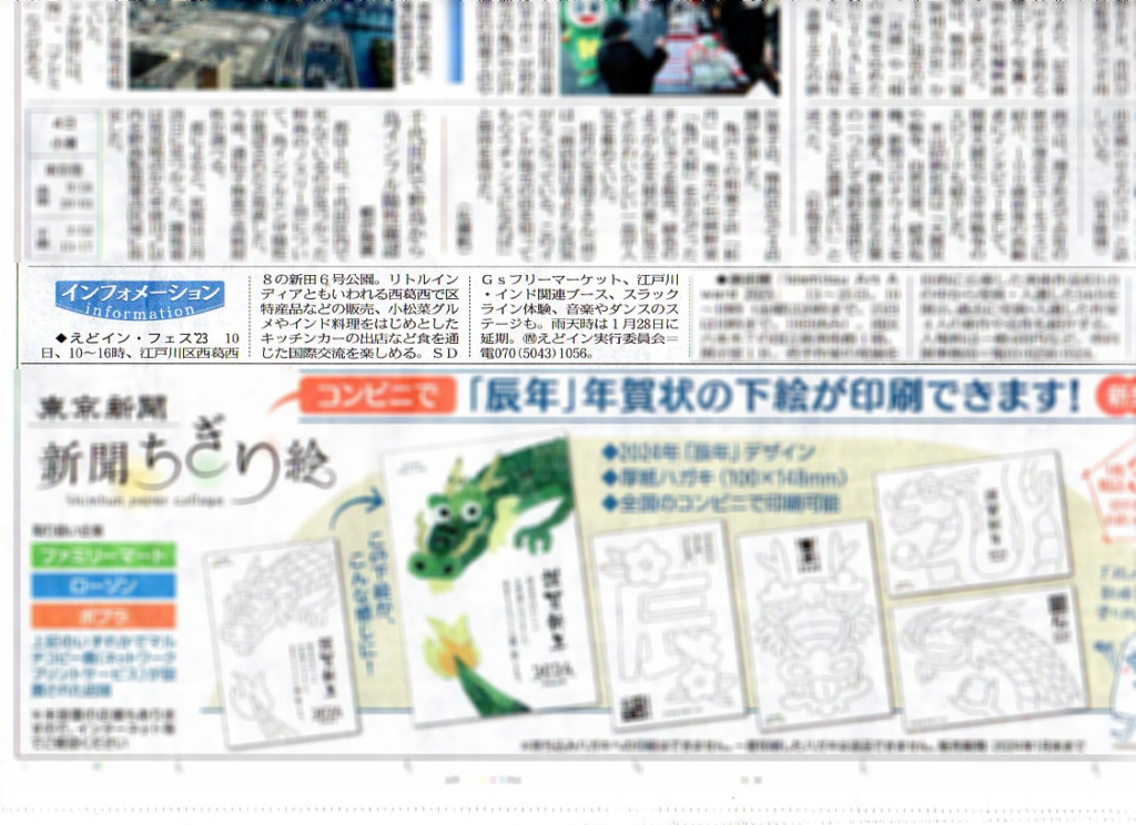 🗞2023年12月3日(日曜日) 東京新聞朝刊・都内版15面『地域の情報 したまち』のインフォメーション欄にて、「えどイン・フェス’23」を取り上げて頂きました。