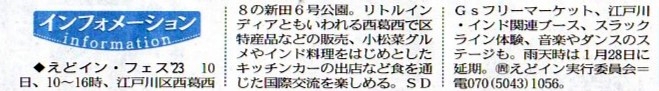 12月3日(日)東京新聞朝刊『地域の情報(都内版)』に、えどイン・フェス’23の事前告知が掲載されました。